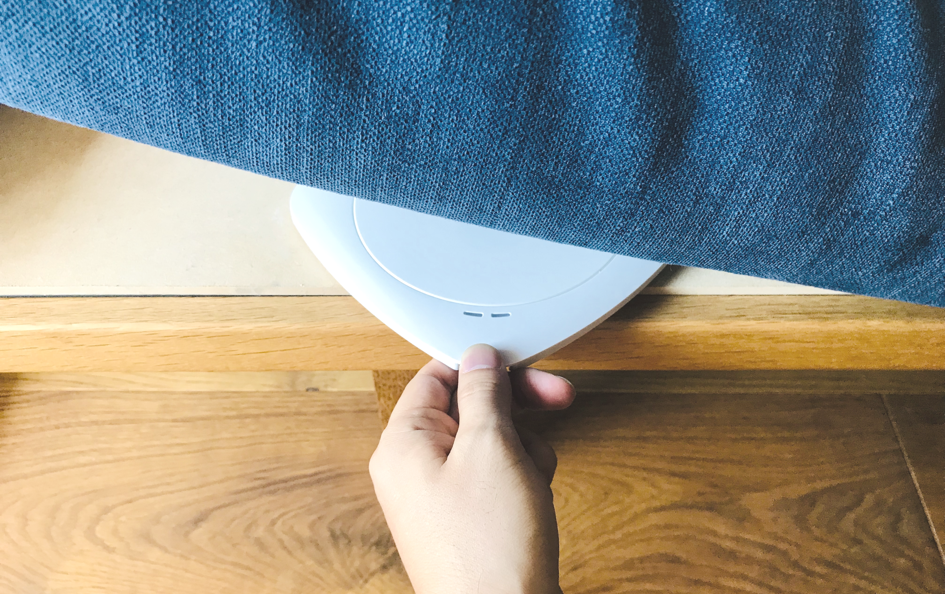 2. LEDライトがある面を上にし、マットレスの下に設定します。