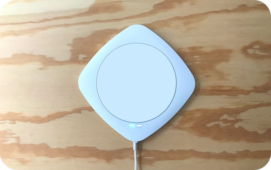 1. センサー設定画面が表示されたら、センサーに電源ケーブルを差し込み、コンセントに接続します。電源が入ると緑のランプが点灯します。