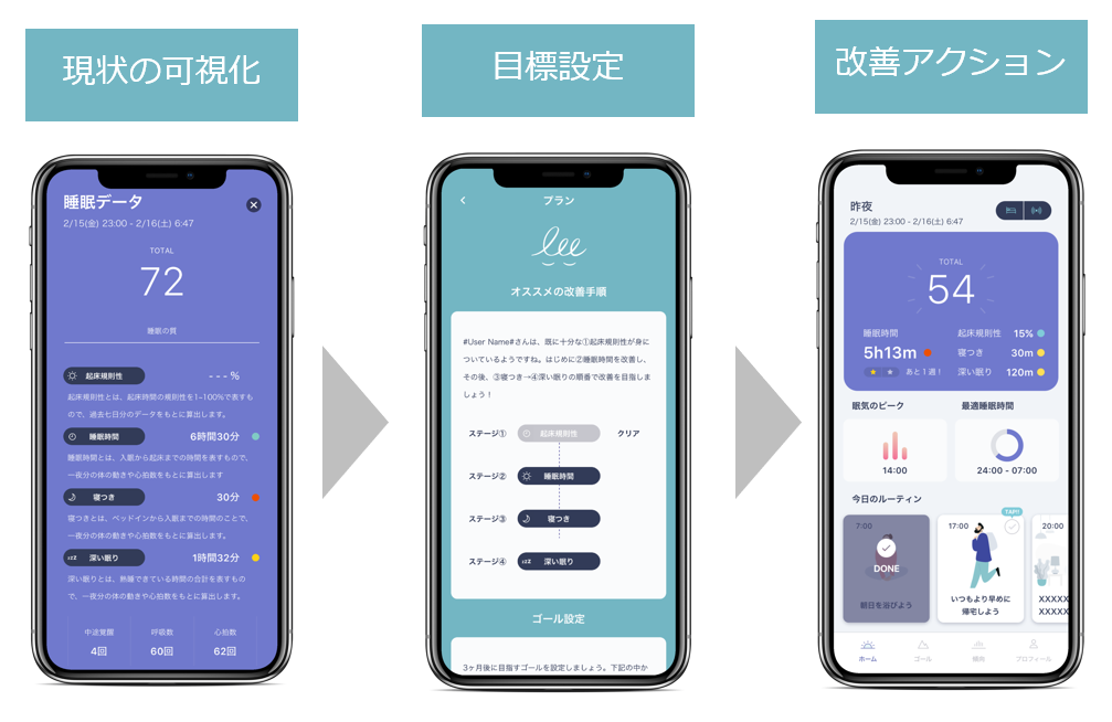最初の1週間の睡眠データをもとに、3ヶ月後のゴールに向けて、あなただけの改善プランができあがります。
