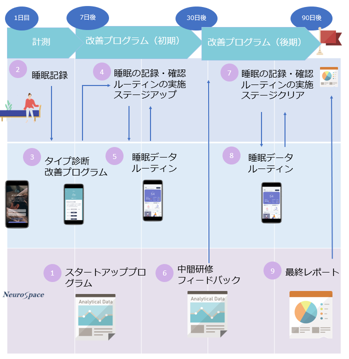睡眠習慣デザインプログラム全体の流れは下記のとおりです。
