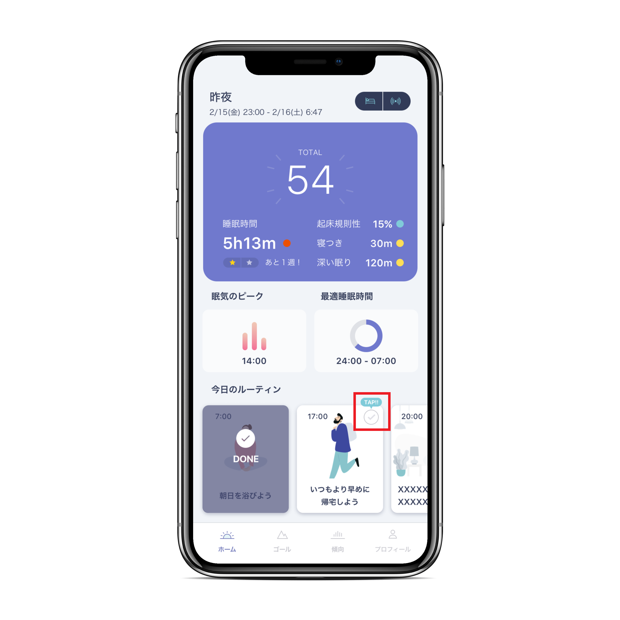 時間に厳密になる必要はありませんので、その日に取り組んだルーティンをTapしましょう